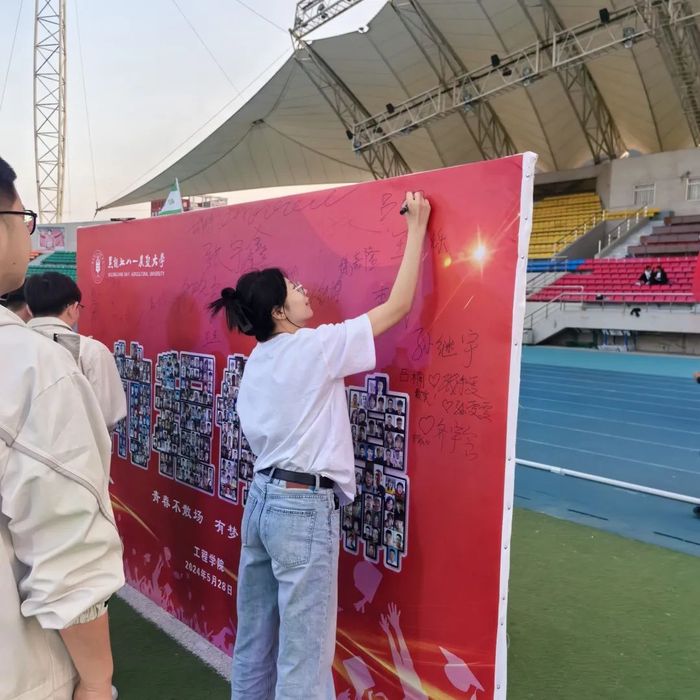 5月28日晚,学院于南体育场举办第二届草坪音乐节暨“韶光永熠,万里可期”毕业歌会。学院党委书记宋清萍、党委副书记孙海宁、全体辅导员以及线上线下2000余人参加,为毕业生们送上最诚挚的祝福。辅导员老师们收集了同学们在本硕博在读期间496张照片,用心拼成了代表学院老师们心声的前程似锦签名板,同学们在上面留下自己的名字,找寻自己大学美好的记忆。