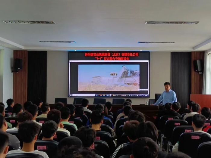 梁卫东总经理首先介绍了公司的基本情况和发展历程,作为欧洲第一、世界领先的农业机械制造商,科乐收一直致力于为全球农业提供高效、可靠的机械设备和解决方案,详细介绍了公司的产品线、技术实力以及在全球市场上的地位。科乐收农业机械贸易(北京)有限责任公司作为“3+1”校企联合培养模式的合作企业,将为学生提供优质的实习机会和职业发展指导。他表示,公司注重员工的综合素质和创新能力,希望学生们在实习期间能够积极学习、勇于实践,不断提升自己的能力和素质。同时,公司也将为实习生提供完善的培训计划和职业发展通道,帮助他们更好地适应职场环境。