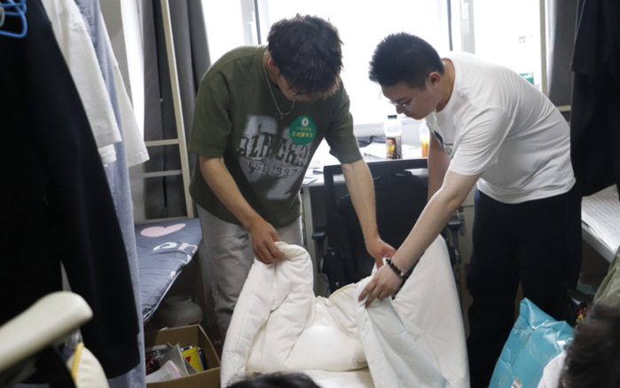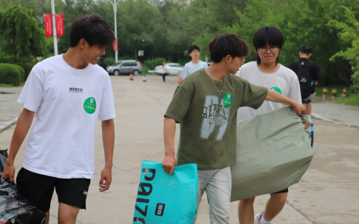志愿者们提前联系毕业生,进入宿舍楼帮助毕业生完成行李归纳整理、打包入袋和搬运下楼等工作,在大家的努力下,一袋袋行李相继被搬运至快递站。本次志愿活动中,志愿者们秉持着奉献精神,带着微笑和大包小包的行李,在宿舍楼上下奔走。
