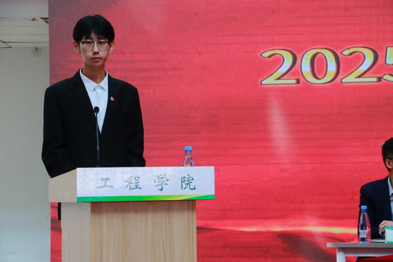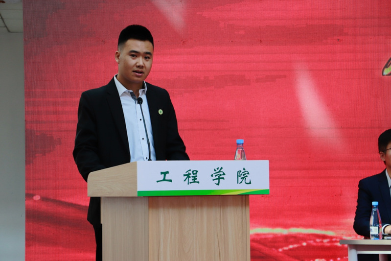 在授旗仪式环节,学院领导为各学生科技社团代表授旗,勉励大家积极投身科技实践,争创佳绩。随后,2023级农业工程博士研究生王淞作为科研骨干代表,分享了其在“基于TRIZ理论的带式玉米高速精量播种智能监控系统设计”项目中的科研经验与心得体会。