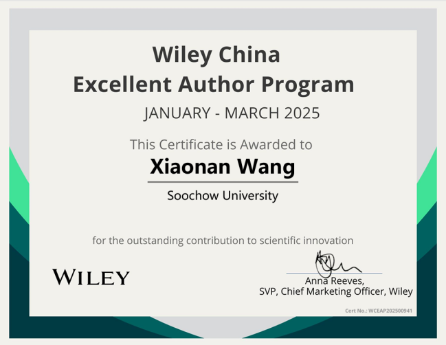 据悉,为支持中国实现《国家“十四五”期间人才发展规划》中提出的促进基础研究和科技创新的重要目标,Wiley公司近年来显著加强了对中国作者的支持力度,全力协助中国科研界在基础研究与科技创新领域取得显著成就。为表达对中国作者在推动科技进步方面所做出的巨大贡献的深切感谢,Wiley中国在广受中国作者认可的期刊中,经过严格评选,授予了数位杰出作者“Wiley威立中国高贡献作者”的荣誉称号。