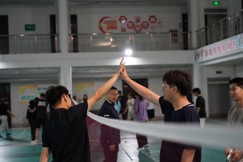 赛前抽签环节紧张有序,为比赛拉开精彩序幕。比赛设男双、混双团体赛项目,选手们身姿矫健,发球、扣杀等动作展现扎实功底。入围赛采用15分制,选手们全神贯注,每分必争,展现战术智慧与竞技风采。八强赛21分制对抗中,选手们火力全开,男双跳杀凌厉、混双配合默契,攻防交替引发现场阵阵欢呼。 决赛三局两胜制较量将赛事推向高潮,双方比分胶着,多拍对拉、关键暂停战术凸显竞技魅力,让观众尽享运动激情。赛事严格执行“不得兼项”规则,确保公平竞技。裁判安排独具特色:首场由学生会人员担任,后续由上一场获胜方执裁,既保障判罚专业,又提升选手参与感。赛后选手隔网击掌,彰显体育精神与友好风度。