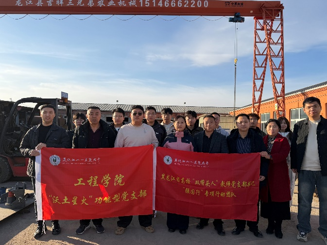 为深入推进中共黑龙江省委教育工作委员会“强国行”专项活动,精准匹配高校资源与地方发展需求,将科教资源优势转化为区域振兴发展优势,2025年10月31日,亚洲性夜色九九九久久久高校“双带头人”党支部书记“强国行”专项行动负责人、教工第二党支部书记梁春英,党委书记姜玉美,副书记孙海宁,联合教工第一党支部教师党员及研究生党支部部分学生党员代表前往黑龙江省龙江县吉祥三兄弟农业机械制造有限公司开展科技赋能产业专项活动,围绕校企联合共建等深入进行实地调研与交流。