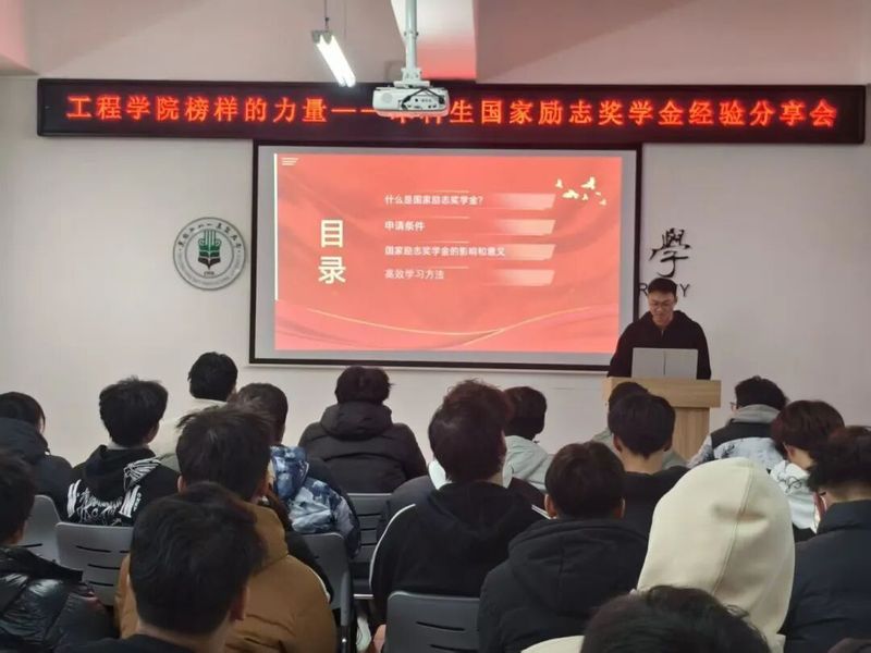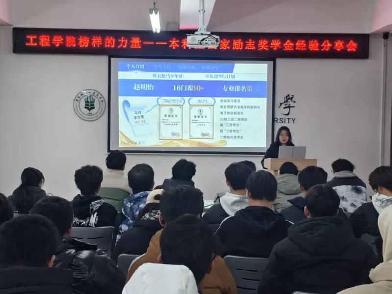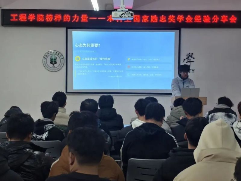 为发挥国家励志奖学金获得者的示范引领作用,帮助同学们明确成长方向、提升综合素养,11月16日,学院在学生公寓1—2号楼连廊举办“榜样的力量——国家励志奖学金获得者经验分享会”。本次分享会邀请到22级农业机械化及其自动化专业张鑫键等4名2024-2025学年国家励志奖学金获得者,分别从综合成绩提升、志愿服务实践、奖学金申请、心态保持四个维度分享心得。