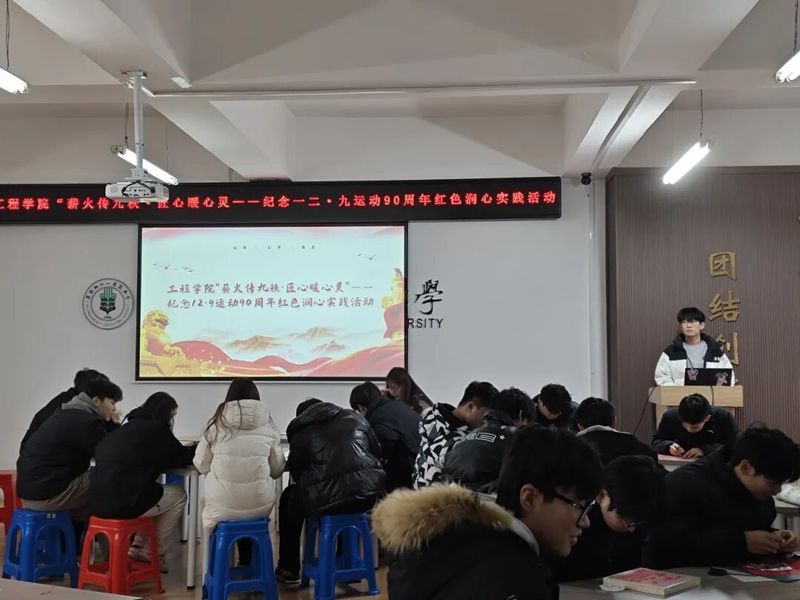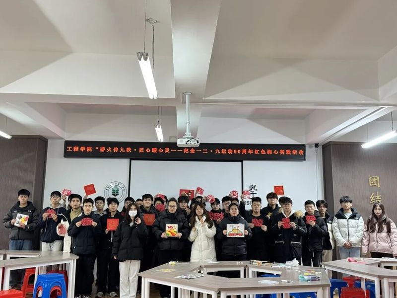 为深切缅怀一二・九运动中挺身而出的爱国青年,传承绵延九秩的红色基因,缓解大学生学业与生活压力,培育积极健康的心理状态,11月29日,学院在“一站式”学生社区1-2号楼连廊以 “薪火传九秩・匠心暖心灵” 为主题,举办纪念一二・九运动 90 周年红色润心实践活动。