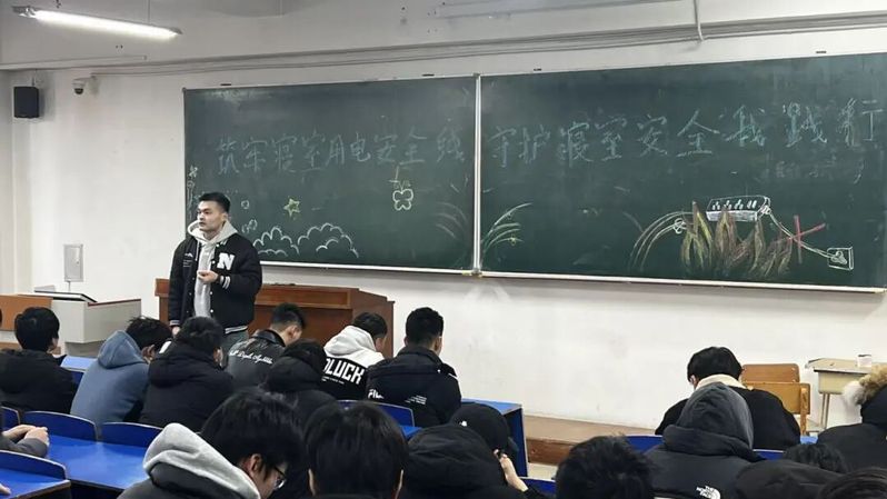 大会上,各年级辅导员结合本校及其他高校寝室用电安全事故典型案例,通过图文展示、数据解读等直观方式,深入剖析违规使用大功率电器、私拉乱接电线、充电器长期通电、杂物堆积遮挡电源等行为的安全隐患,让全院学生深刻认识到寝室安全事故的危害性与防范的重要性。随后带领学生系统学习《学生宿舍安全管理规定》,重点明确要使用带有3C认证的正规充电宝及插排等用电设备,人走断电,禁止使用电热毯、电暖器、电磁炉等违规电器,详细讲解安全用电操作规范、寝室物品摆放标准、火灾应急处置流程等关键内容。同时提醒学生注意财产安全,务必将贵重物品妥善保管,离开宿舍时及时锁好门窗。会后,辅导员们深入学生宿舍,重点检查学生用电设备使用情况,并现场指导插排等用电设备的摆放。